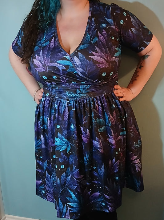 Cat and leaves Wrap Style Dress
